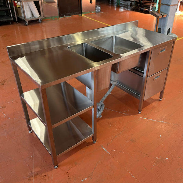 二段棚・引き出し付き二層サイドカウンタシンク SK-02¥355,850(税込)- 外形寸法